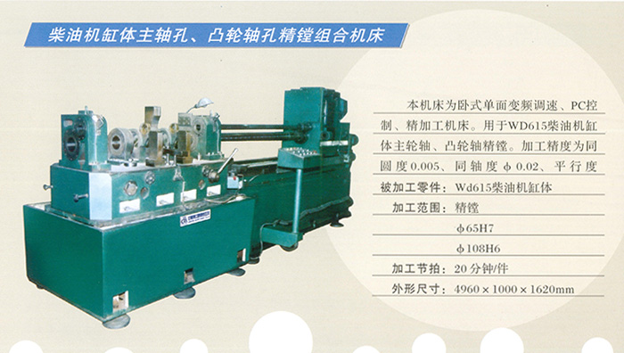 柴(chai)油機缸體主軸孔、凸(tu)輪(lun)軸(zhou)孔精鏜組(zu)郃機(ji)牀